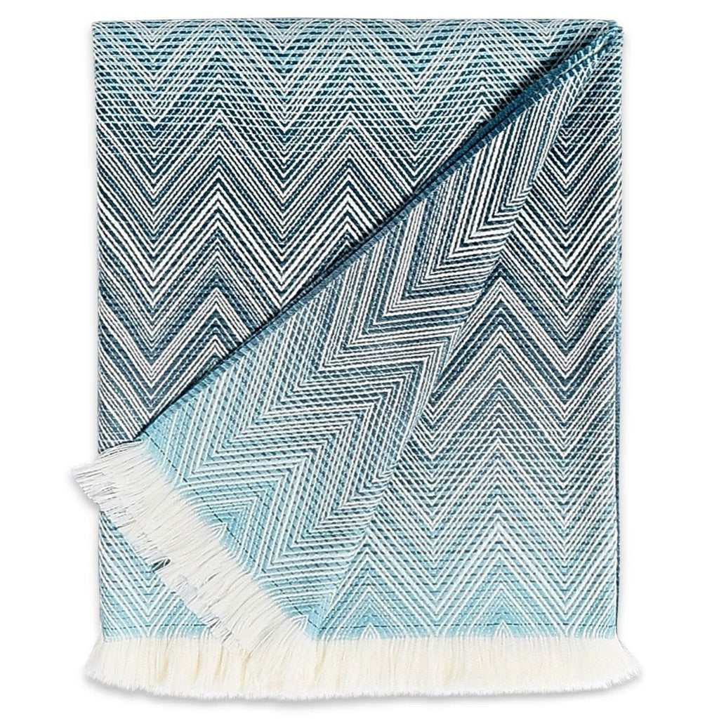 - Plaid en laine mérinos à grand motif chevron ton sur ton.