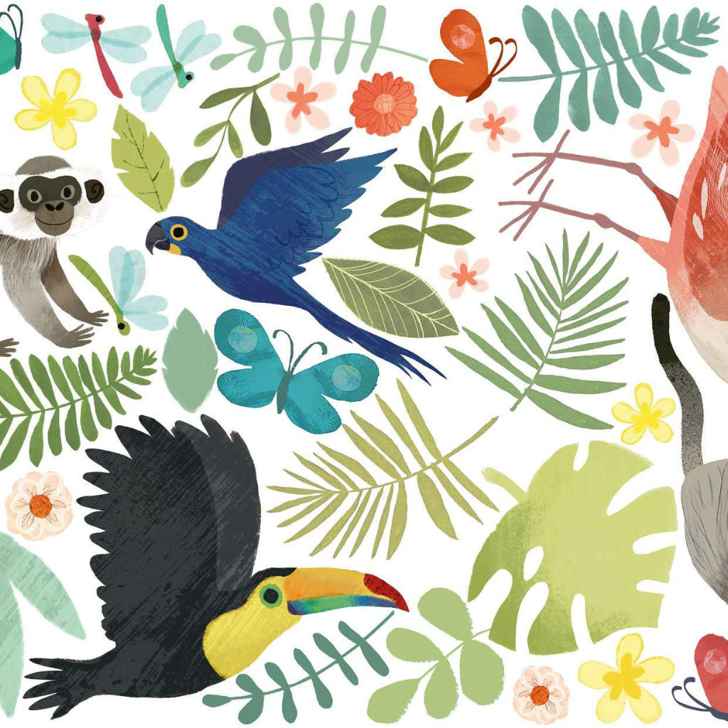Créez une scène de jungle sauvage avec les personnages d'Amazonie cachés dans le feuillage de la jungle. Créez votre propre habitat de jungle avec des feuilles énormes et des belles fleurs.