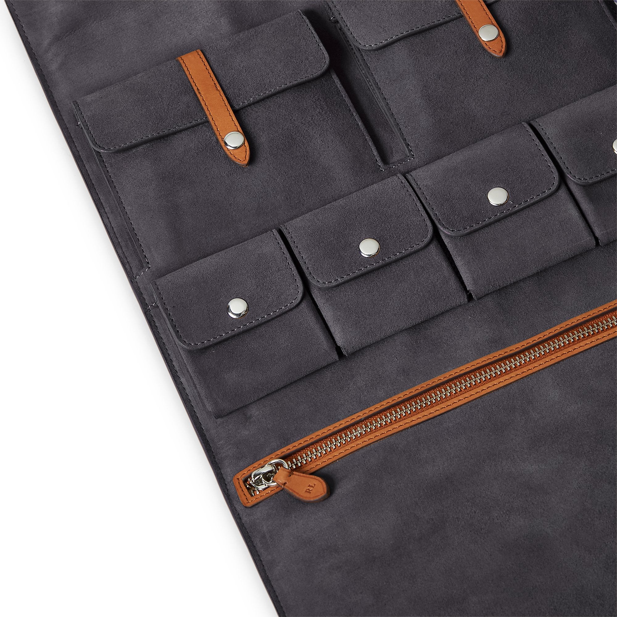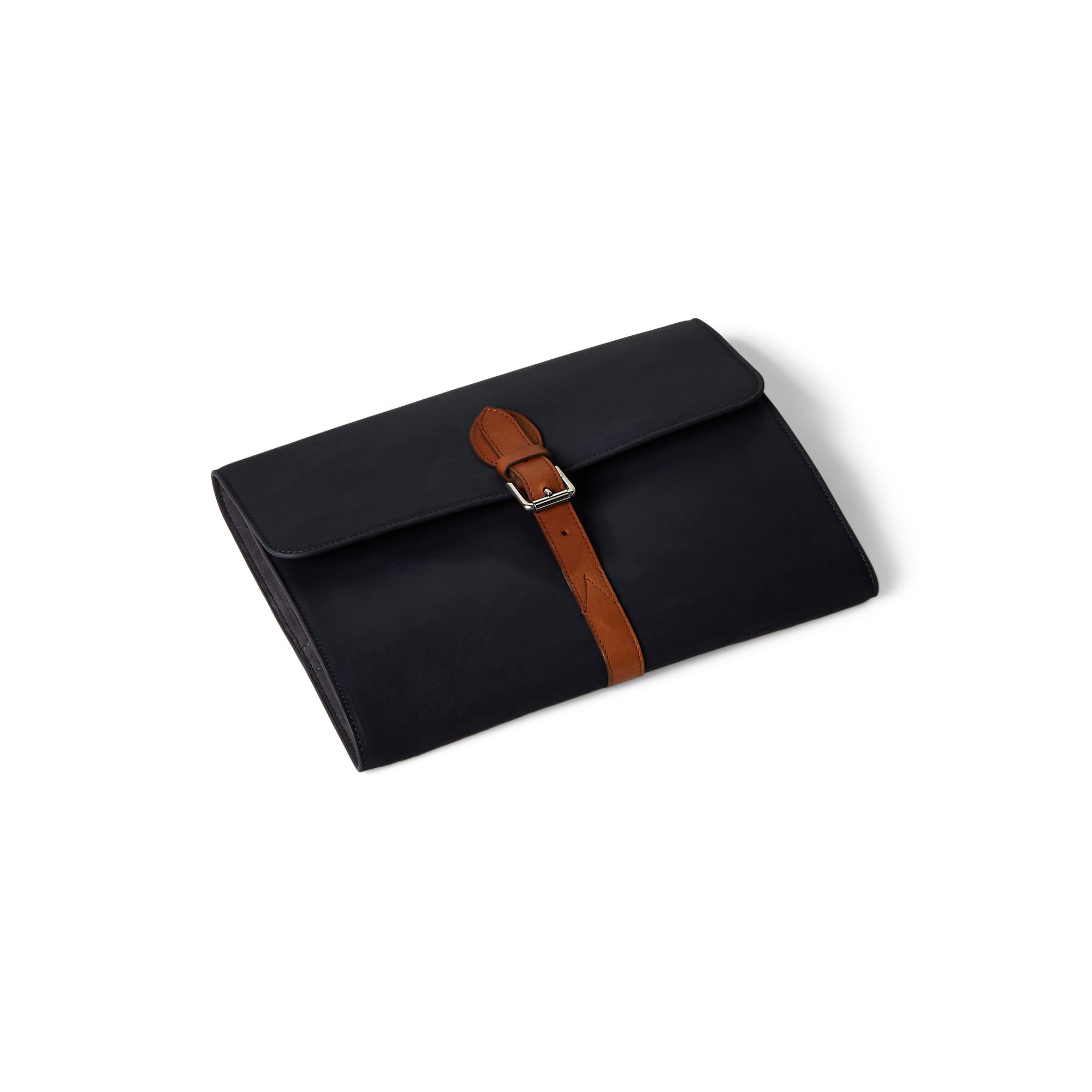 Confectionnée avec soin en cuir de vache naturel, cette élégante trousse pour accessoires est doublée de chèvre velours ultra doux et arbore une fermeture à boucle.